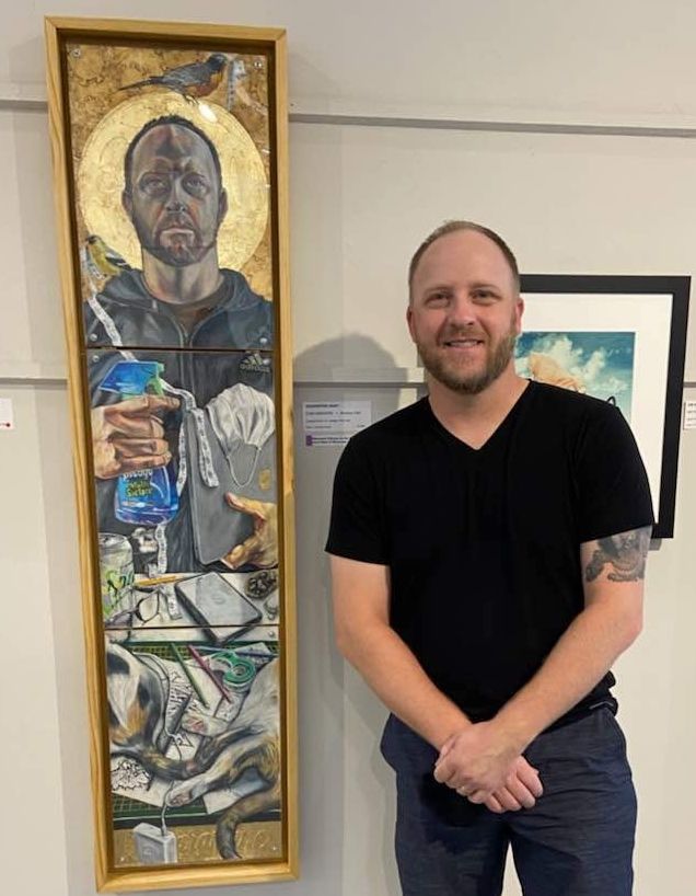 This year’s MCA “Great State of Minnesota Award” at the State Fair went to Chad Manders of Brooklyn Park for the piece called “Quarantine Saint.” He won a big ribbon and $100. Congratulations Chad!