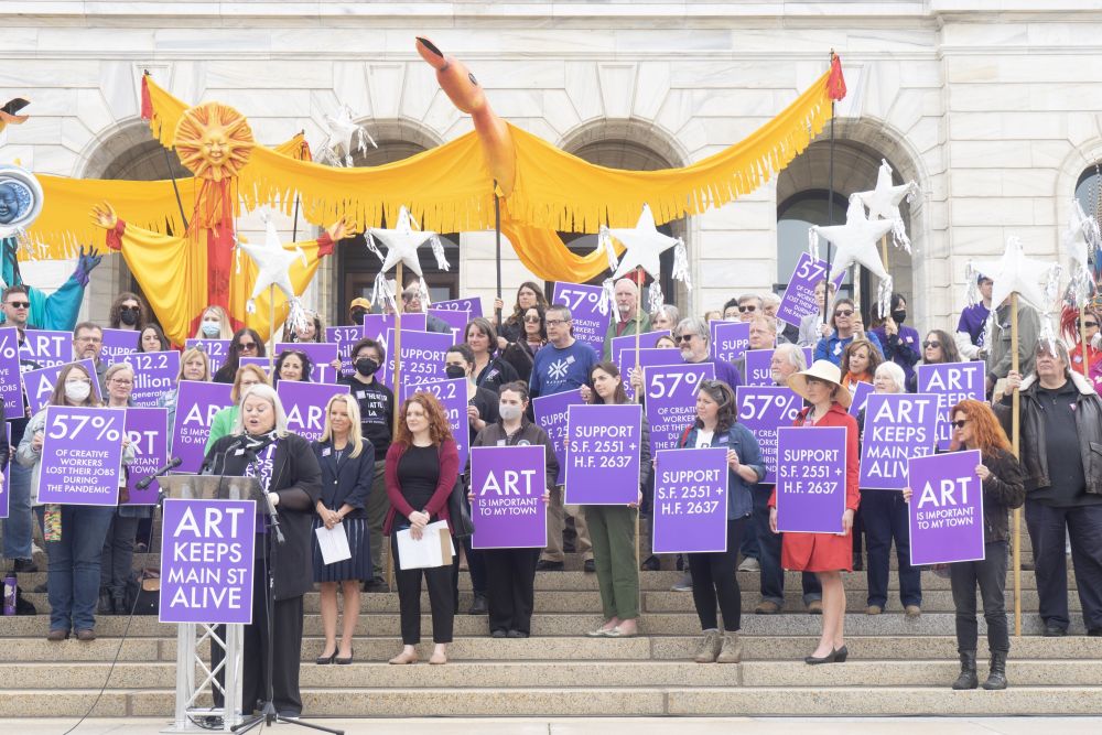 The 2023 Legislative Session ends in just under two weeks and the arts need to make one final push at the Capitol to make sure the CREATE Jobs bill crosses the finish line. Capitol Leadership will be meeting again in the next few days to finish work on budget bills, and if we want the $190 million CREATE Jobs bill to be included in those final bills, legislative leaders need to hear from you. That is why we are scheduling a rally and press conference for the arts and the CREATE Jobs bill for: THURSDAY, MAY 11TH at 10 AM, on the west steps of the Minnesota Capitol. It will only take about 15-20 minutes and we’ll have coffee and donuts and performers and friends from all over the state and arts community. Wear your arts gear, costumes; bring your instruments, paintings; bring your friends, kids, families, staff, neighbors, friends!